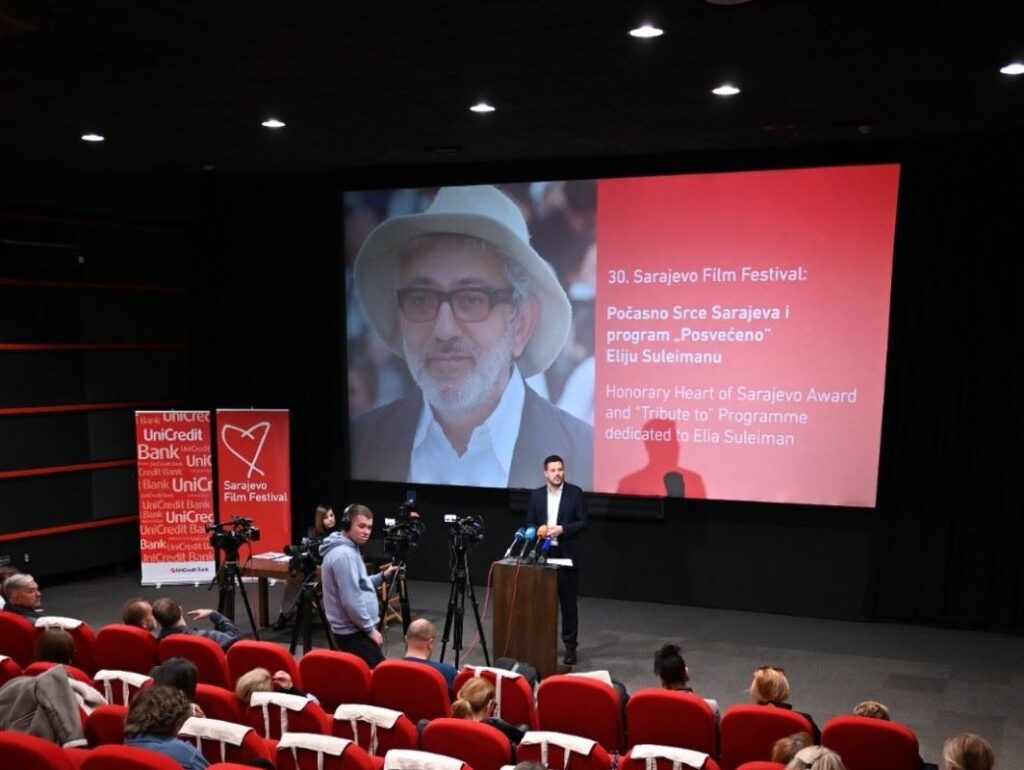 30. Sarajevo Film Festival odat će počast palestinskom reditelju Eliji Suleimanu u znak priznanja za njegov izuzetan doprinos filmskoj umjetnosti. Višestruko nagrađivanom autoru bit će uručeno priznanje Počasno Srce Sarajeva, dok će u sklopu programa „Posvećeno“ (Tribute to) biti prikazana retrospektiva njegovih izabranih filmova.